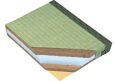 建材のみの構造で耐久性にすぐれ、リサイクルにも対応。 ホルムアルデヒドを吸収し分解する。 湿気に強く放湿性にもすぐれる。 畳の厚みを自由に変える事が出来る。 価格は高め。